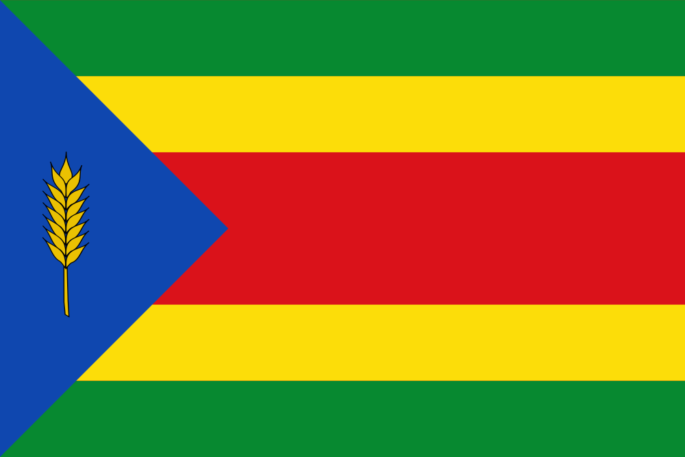 - El asta un triángulo azul cargado de una espiga de trigo amarilla.
